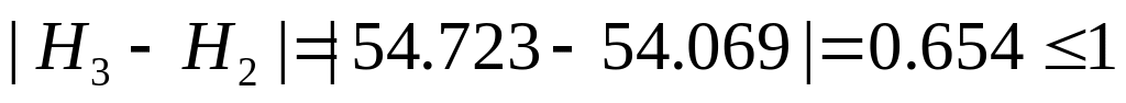 Уточнение проводят до тех пор, пока не будет выполнено условие (10), т.е. два последовательных значения (Hi+1 и Hi) будут различаться менее чем на один метр.