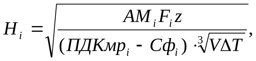 В том случае, если необходимо рассчитать высоту источника горячих выбросов (∆T≥10), первоначальное значение высоты можно также определить по формуле (1). Если при этом будет выполняться условие (11), то значение высоты считается окончательным: