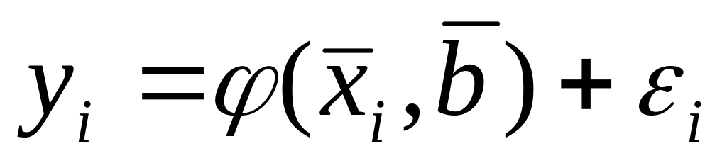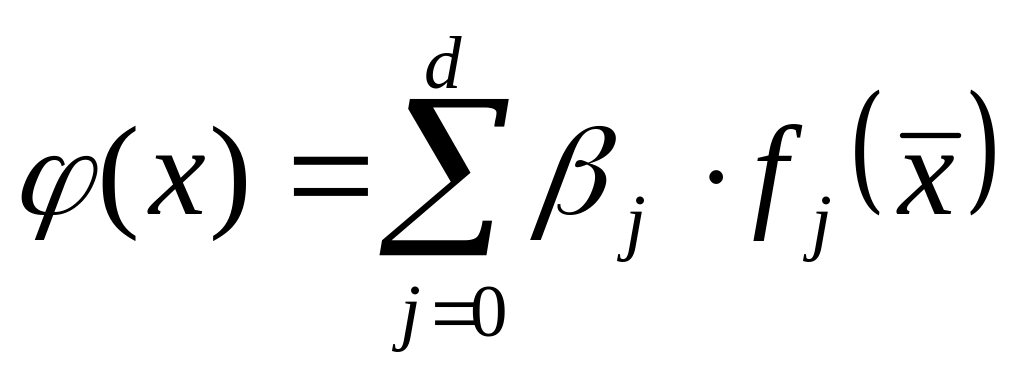 Т.к.в рез-те проведения экс-та всегда получаются случ.значения ф-ии отклика,то и рассчитанные знач-я коэф-ов модели b явл-ся оценками истинных значений коэф-ов модели β. Ф-ю φ(x)м. представить:
