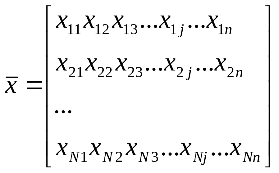 Исходными данными для оценки параметров регресс модели явл-я данные о значениях факторов x и ф-ии отклика Y. Это информация представлена в виде: