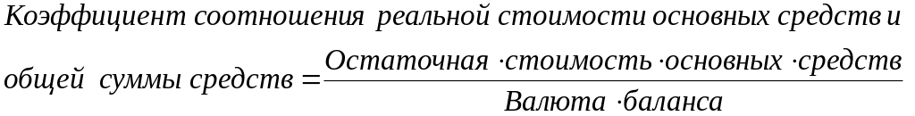 ж) Коэффициент соотношения реальной стоимости основных средств и общей суммы средств