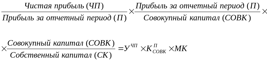 Факторная модель прибыльности общего (совокупного) капитала ( ) может быть представлена в виде формулы: