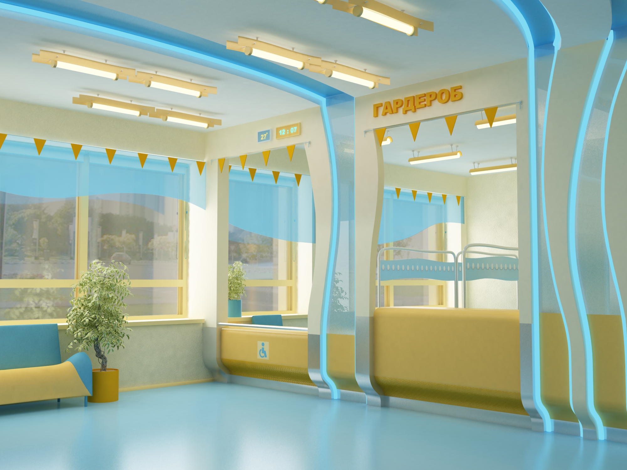 Гардероб уменьшен (с учетом пропускной способности бассейна) за счет замены больших в диаметре «барабанов»-вешалок для одежды на компактные вешалки. Таким образом, окна стали функциональны, т.е. появилось естественное освещение.