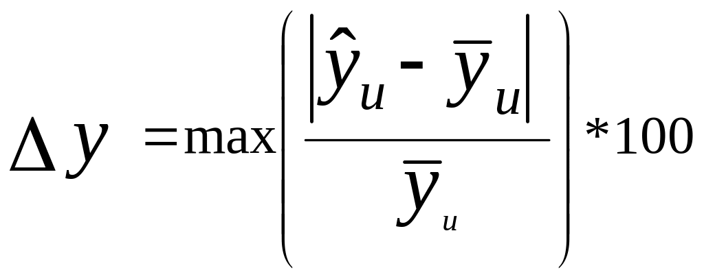 Максимальное относительное отклонение расчетного значения выходной характеристики от экспериментального вычисляется по формуле: