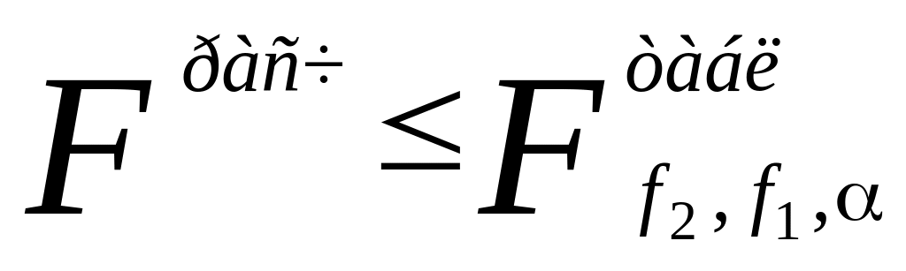 Гипотезу об адекватности уравнения принимают в том случае, когда рассчитанное значение F- критерия не превышает табличного для выбранного уровня значимости, т.е когда