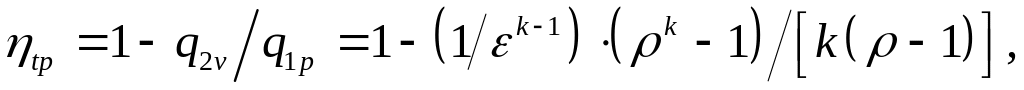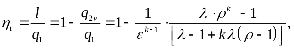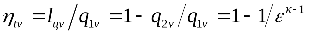 Термічний коефіцієнт корисної дії циклу визначається за загальними співвідношеннями