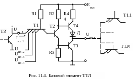 Базовый логический элемент ттл. Элемент ттл: схема, статическое состояние, передаточная характеристика.