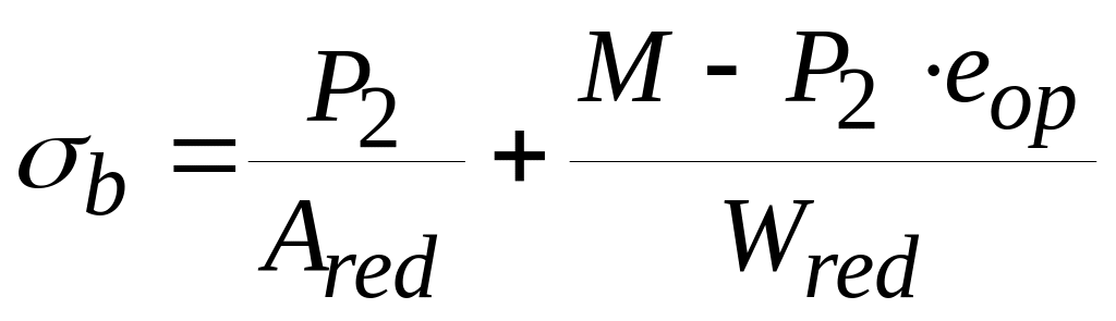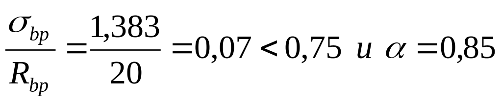 Максимальное напряжение в сжатом бетоне от внешней нагрузки и усилия предварительного напряжения составит: