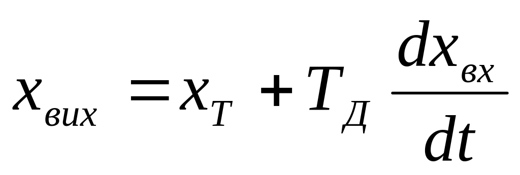 Таким чином, через блок передування (диференціювання) пропускається тільки сигнал, пропорційний поточному значенню хТ регулюючого параметра. У такому разі рівняння (6.111) міняє вигляд