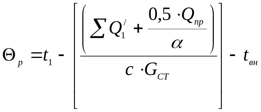9.3. Розрахунковий температурний натиск ,°С на опалювальному приладі двотрубної системи опалювання повинен визначатися з урахуванням охолодження води у відкрито прокладених транзитних подаючих трубопроводах по формулі: