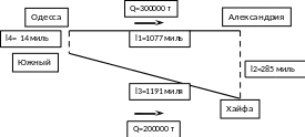 Для освоения грузопотока выбирается кратчайший путь между заданными портами. Район плавания судов между портами Одесса, Александрия, Хайфа и Южный включает следующие участки: Северо-Западная часть Черного моря, проливы Босфор и Дарданеллы, Мраморное море, Эгейское море, Средиземное море.