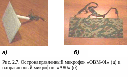 Направленный микрофон «ВЕКТОР» (рис. 2.6,б) имеет максимальную дальность контроля информации при соотношении сигнал/помеха не менее единицы – 30 м. Выходной сигнал – линейный выход, головные телефоны.