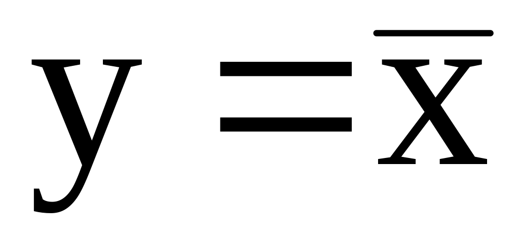Отрицанием называется такая логическая связь между входной логической переменной х и выходной логической переменной у, при которой у истинно только тогда, когда х ложно, и, наоборот, у ложно только тогда, когда истинно х.
