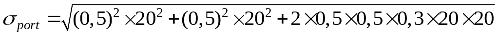 Уровень риска при формировании портфеля из акций двух компаний можно определить из следующего выражения: