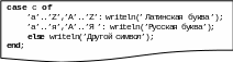 Кроме того, по символьной переменной можно сделать проверку с помощью case: