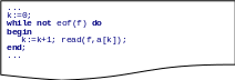 При чтении из файла неизвестной длины, можно перед чтением проверять, не кончился ли ещё файл, с помощью функции eof(ф/п), которая даёт true, если указатель находится после последней записи. Например: