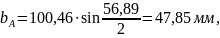 Ширини вікон у корпусі в перерізах А-А і Б-Б (хорди, які відповідають відповідно кутам і ) визначаємо за формулами