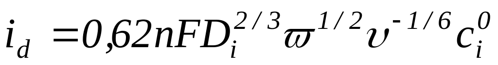 Коэффициент 0,62 соответсвует размерностям : i – А/м2, D и - м2/с, сi – моль/м3, - рад/с.