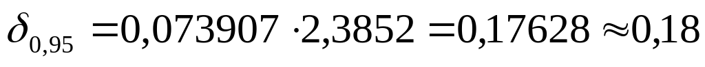 интерполяцией определяется: при keff = 6,75, t ∙0,95 = 2,3852,