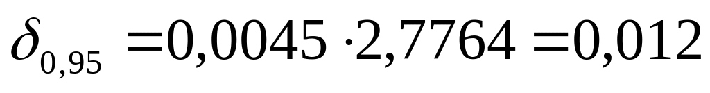 Р=0,95 ч.с.с.=5-1=4 t∙0,95=2,7764