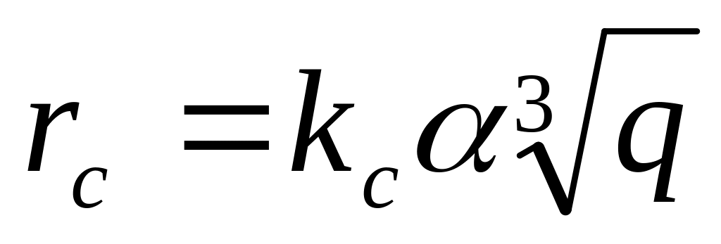 где rc – расстояние от места взрыва, м, kc – коэффициент, величина которого зависит от свойств грунта в основании охраняемых сооружений; числовые значения коэффициента приведены в табл.3., α – коэффициент, зависящий от величины показателя действия взрыва n; числовые значения коэффициента приведены в табл.4,q – величина заряда ВВ, кг.