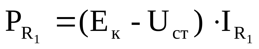 4. Имея значение сопротивления резистора R1 и ток, протекающий через него, рассчитывается мощность рассеяния резистора R1: