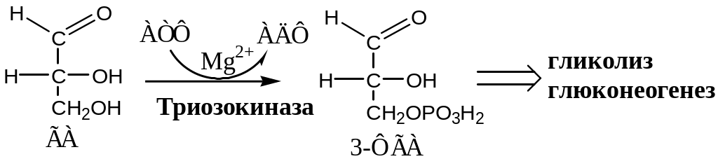 ДАФ и ГА, полученные из фруктозы, включаются в печени главным образом в глюконеогенез. Часть ДАФ может восстанавливаться до глицерол-3-ф и участвовать в синтезе ТГ.