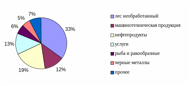Лесная отрасль традиционно составляет ядро экспортного потенциала Хабаровского края. В общей экспорта на продукцию из древесины приходится в среднем 35%. С утратой потребителей лесной продукции внутри страны отрасль все больше ориентируется на экспорт и находится в зависимости от конъюнктуры, складывающейся на рынке Японии. В 1999 г. экспорт древесины составил 186 млн долл. Увеличение экспорта лесопродукции по сравнению с 1998 г. произошло за счет роста производства круглого леса до 4,1 млн куб.м., пиломатериалов до 190 тыс.куб.м., а также в результате стабилизации японского лесного рынка. Однако, несмотря на рост экспорта пиломатериалов, доля их в общей сумме экспорта лесоматериалов остается незначительной (4,7%). При этом доля круглого леса в общем объеме лесоэкспорта составила 95%. Объемы экспорта круглого леса заметно растут. Так, если в 1993-1995 гг. он составлял 2,5 млн куб.м в год, в 1997 г. - 3 млн куб.м, то в 1999 г. – 4,1 млн куб.м. Крупнейшими экспортерами в лесной отрасли в 1999 г. были АО «Флора», ЗАО «Форист-Старма», ЗАО «Смена трейдинг», АО «Дальлеспром», ЗАО «Амур-Сиблес» и др.