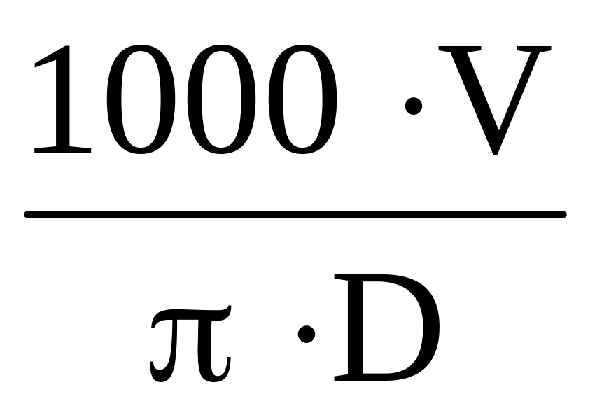 За формулою (1) можна також визначити кількість обертів шпинделя, якщо відомі швидкість різання V та діаметр D.