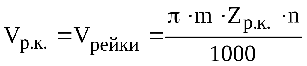 Задача 3. Визначити, яку кількість обертів повинно робити рейкове колесо поздовжньо-стругального верстата моделі 782, щоб надати столу швидкість пересування, яка дорівнює 25 м/хв. Кількість зубців рейкового колеса Zр.к.=14, модуль m=9 мм.