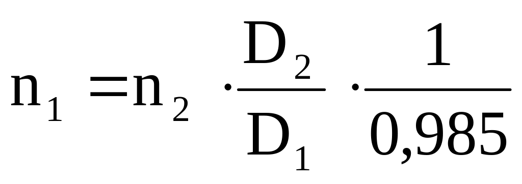 0,985 – поправковий коефіцієнт, який ураховує ковзання ременів;