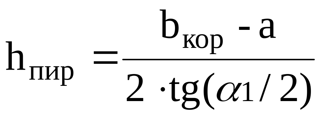 где bкор – ширина коридора понизу, равная 0,4 м; – центральный угол наклона стенок коридора и горизонтали, принимают 60…70; a – размер дна осветлителя под распределительным коллектором, 0,3…0,4 м.