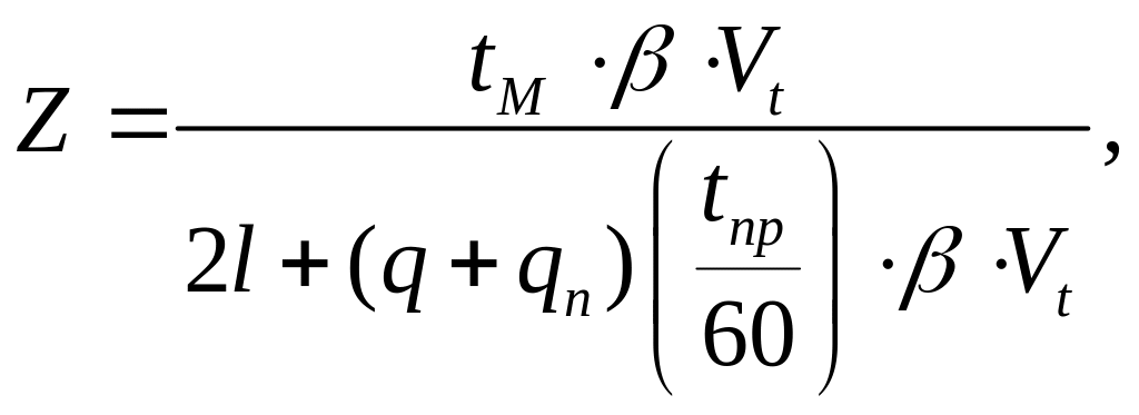 11. Определяем потребное количество автомобилей, необходимых для перевозки заданного объема грузов в установленные сроки, n