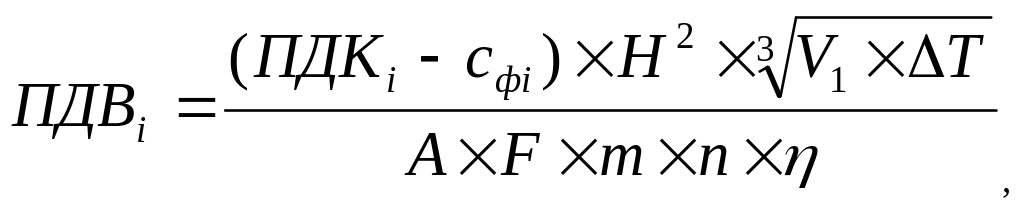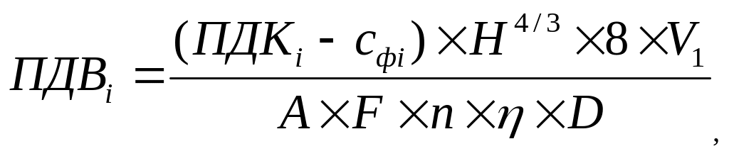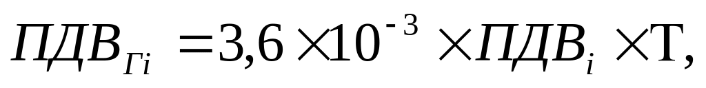 Значение ПДВ (т/год) по каждому вредному веществу определяют по формуле