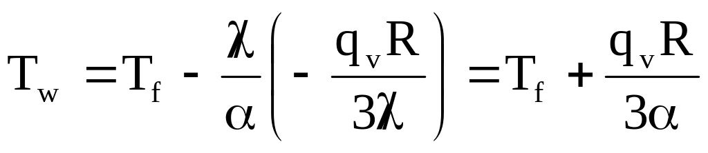 В уравнении (III.10) температуру поверхности шара выразим через температуру флюида и коэффициент теплоотдачи. Для этого воспользуемся граничными условиями на внешней поверхности пластины (III.3). Получим: