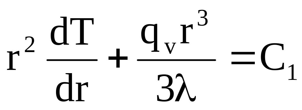 Находим постоянные интегрирования С1 и С2. Для этого применим граничные условия (III.2) и (III.3). Из граничного условия в центре шара и выражения (III.5) следует, что С1 = 0. Тогда общее решение (III.7) примет вид: