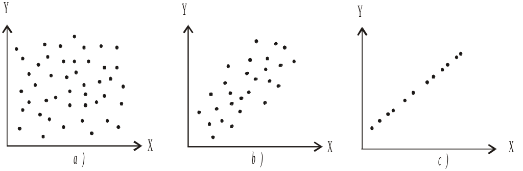 Коэффициент корреляции характеризует линейную зависимость, причем, со знаком «+» положительную корреляцию (при возрастании Х возрастает Y, рис. 3.5 b) ) и со знаком «-» − отрицательную корреляцию (обратная зависимость).