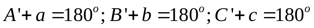 А + а' = 180°; В + b' = 180°; С + с' = 180°.