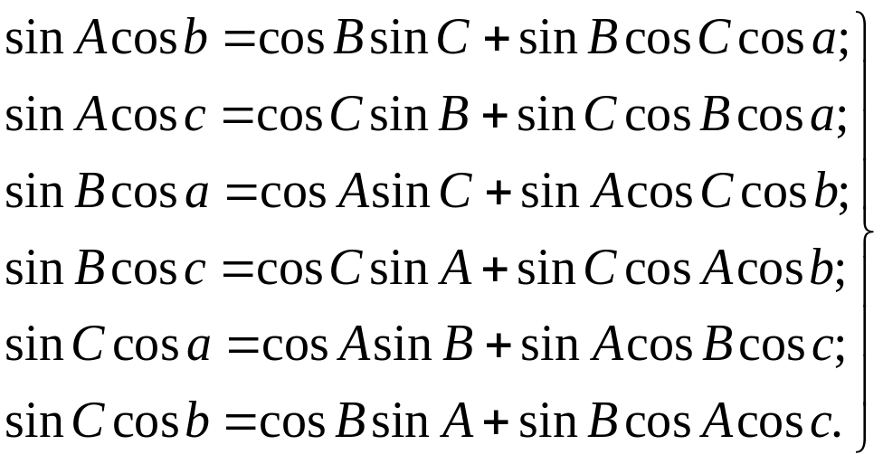 sin В cos a = cos A sin C+sin A cos С cos b.