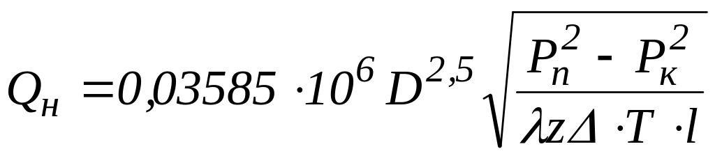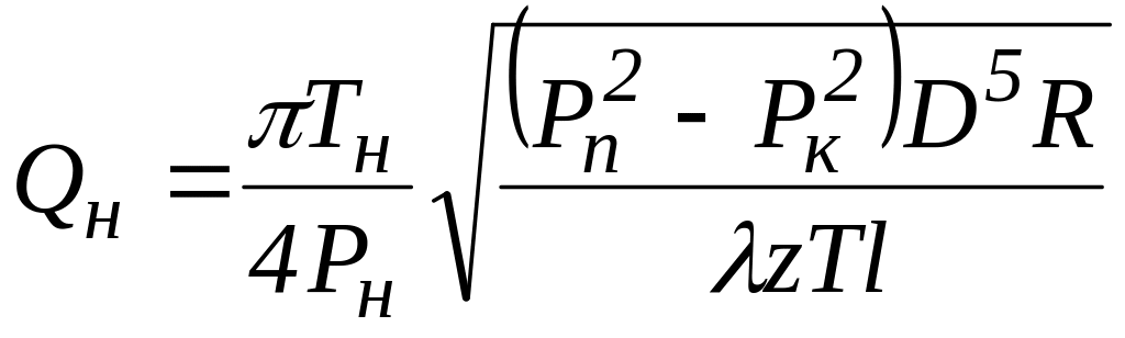 Використовуючи аналітичний вираз для масової витрати газу в газопроводі, одержимо формулу для об’ємної витрати газу за нормальних умов. Із рівняння нерозривності потоку газу з врахуванням (4.6) маємо