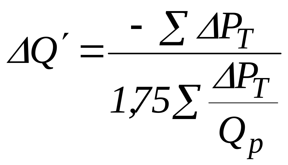 Уточнені значення витрат газу для кожної ділянки кільця знаходяться за формулами: