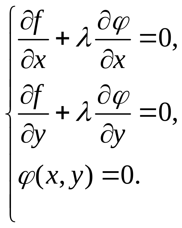 Выше мы рассмотрели функцию двух переменных, однако, все рассуждения относительно условного экстремума могут быть распространены на функции большего числа переменных.