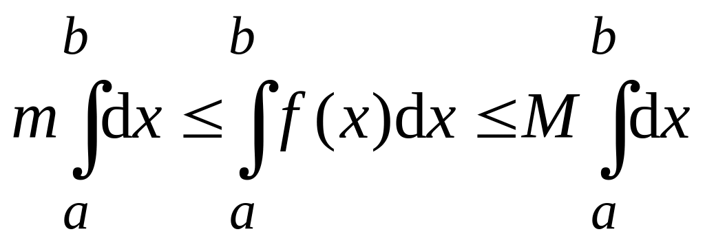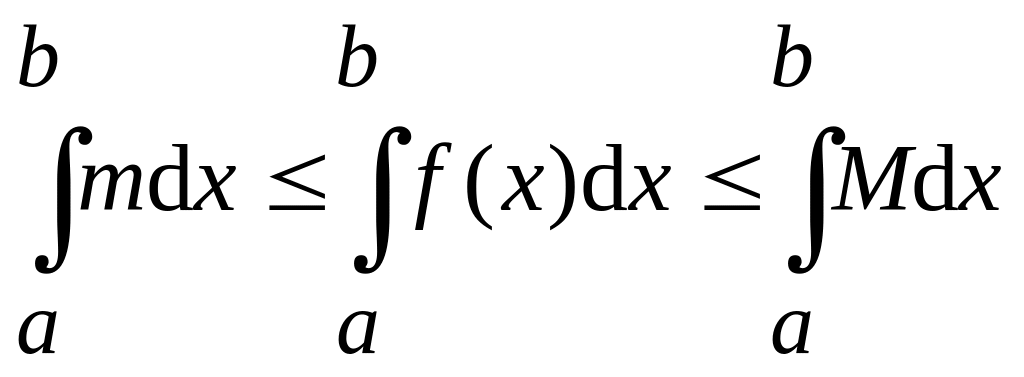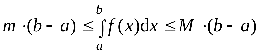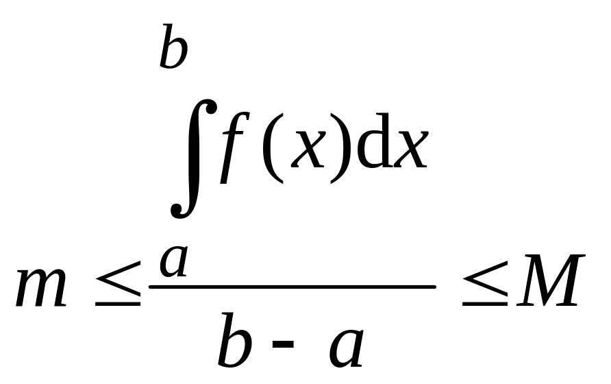 Доказательство. Так как функция f(x) на отрезке [a;b] непрерывна, то она достигает на этом отрезке своих наименьшего “m” и наибольшего “M” значений. Тогда m f(x) M для любого x[a;b]. По свойству 7 определённого интеграла можно записать неравенство: