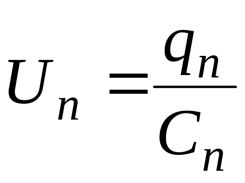 Враховуючи, що Q = CU, Q1 = C1U, Q2 = C2U, ..., QN = CNU, знаходимо вираз для розрахунку електричної ємності батареї паралельно з'єднаних конденсаторів:
