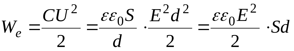 Підставимо у формулу (4.1.14) значення електроємності плоского конденсатора і напруги. Тоді енергія конденсатора дорівнюватиме: