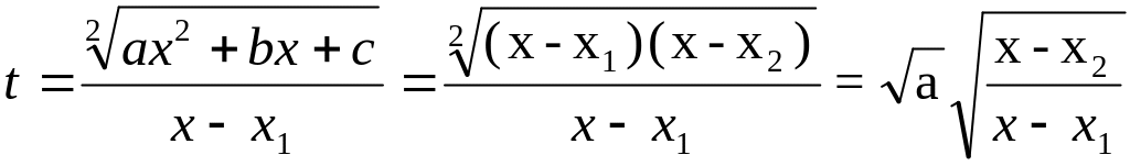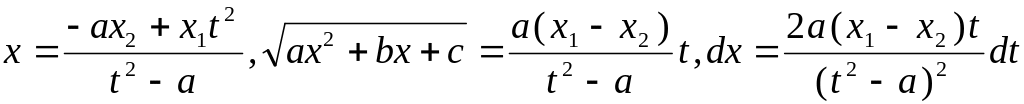 В таком случае ax2 + bx + c = a(x - x1)(x - x2). Докажем, что в этом случае интеграл от функции рационализируется посредством подстановки