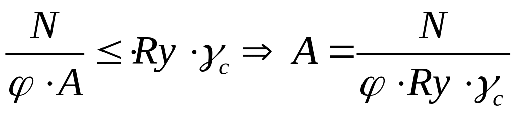 Из условия прочности центрально сжатых элементов определяем площадь поперечного сечения А.
