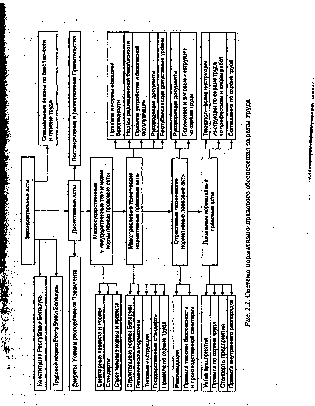 Таким образом, в республике создана достаточно стройная иерархическая система нормативного правового обеспечения безопасности и гигиены труда, которая ориентировочно может быть представлена в виде схемы (рис. 1.1).