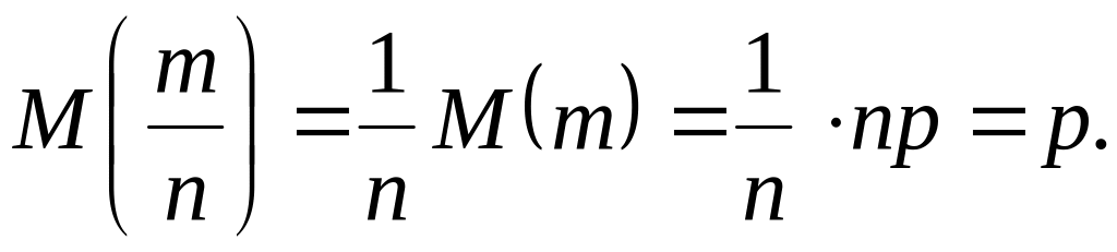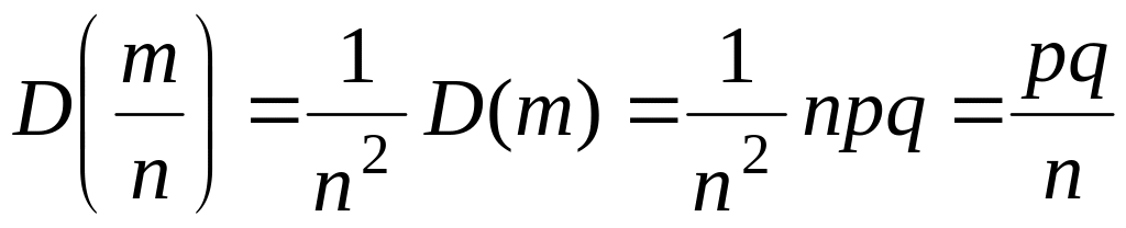 Так как случайная величина Х выражает частоту m наступления события в n независимых испытаниях, то можно записать: