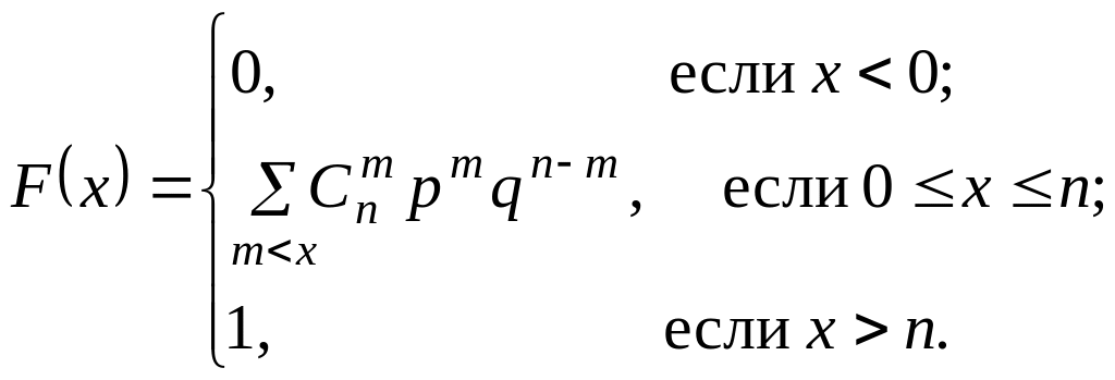 Интегральная функция распределения вероятности биномиального закона имеет вид